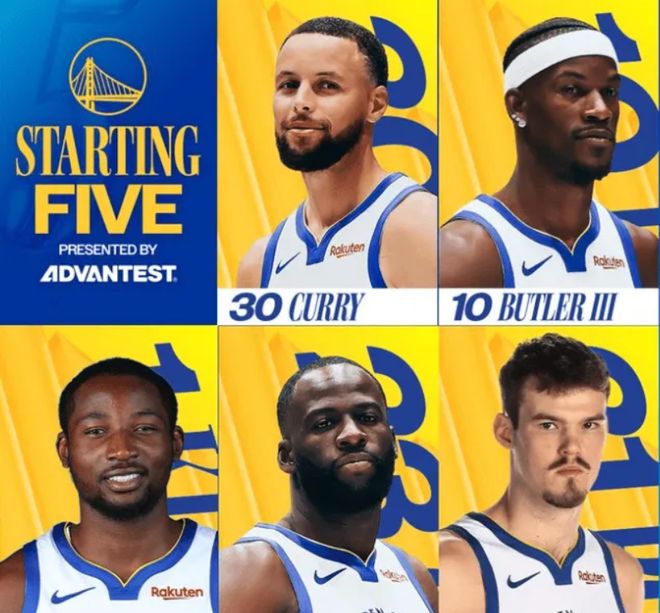 今天比赛,首发阵容方面,勇士队这边,科尔排出的最新首发五人组为:斯蒂芬-库里、乔纳森-库明加、吉米-巴特勒、昆滕-波斯特、德雷蒙德-格林;快船队这边,全员可以出战,首发阵容则为:詹姆斯-哈登、波格丹-波格丹诺维奇、科怀-伦纳德、小德里克-琼斯、伊维察-祖巴茨。