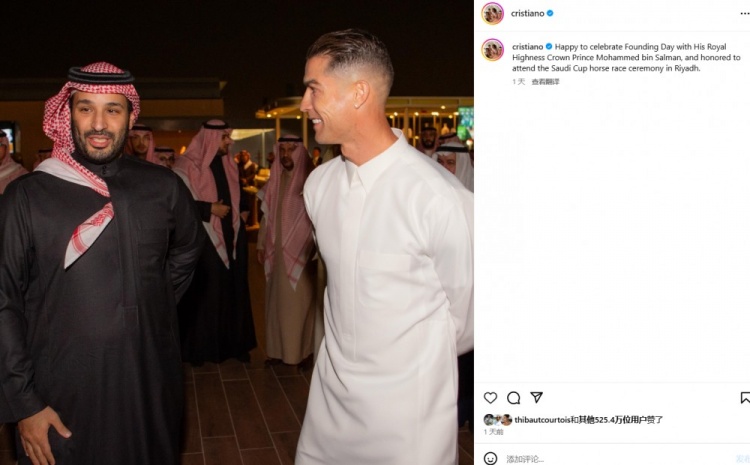 C罗社媒:很高兴与萨勒曼王储共同在利雅得庆祝沙特建国纪念日